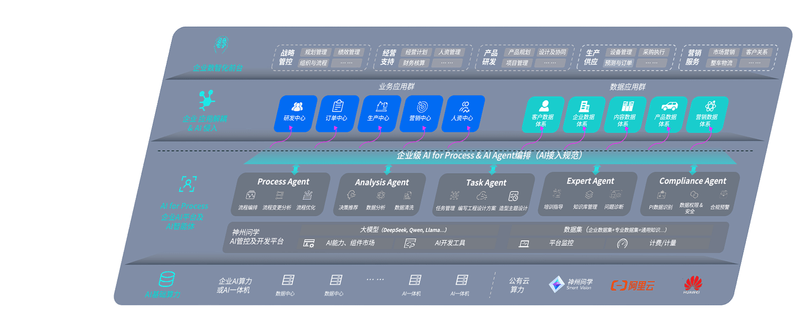 摩登7问学智车解决方案是一套基于AI技术的汽车行业智能化系统,,,,覆盖从底层算力到顶层AI应用的全栈方案。。。方案由算力层、、、、模型层和应用层组成:算力层,,,,方案支持多种一体机配置,,,,具备云端灵活部署、、、多云适配以及动态优化计算资源的能力;模型层,,,摩登7问学平台版提供了企业级AI应用一站式构建与管理平台,,支持基于后训练强化技术的汽车企业专属模型的训练、、评测和运营;应用层,,,,摩登7问学DeepSeek版提供包括超级员工、、、、智能招采、、、智能营销、、智能客服、、、、AI for BI等一系列解决方案,,,可助力汽车行业实现数字化转型,,,让管理更智能、、响应更敏捷。。